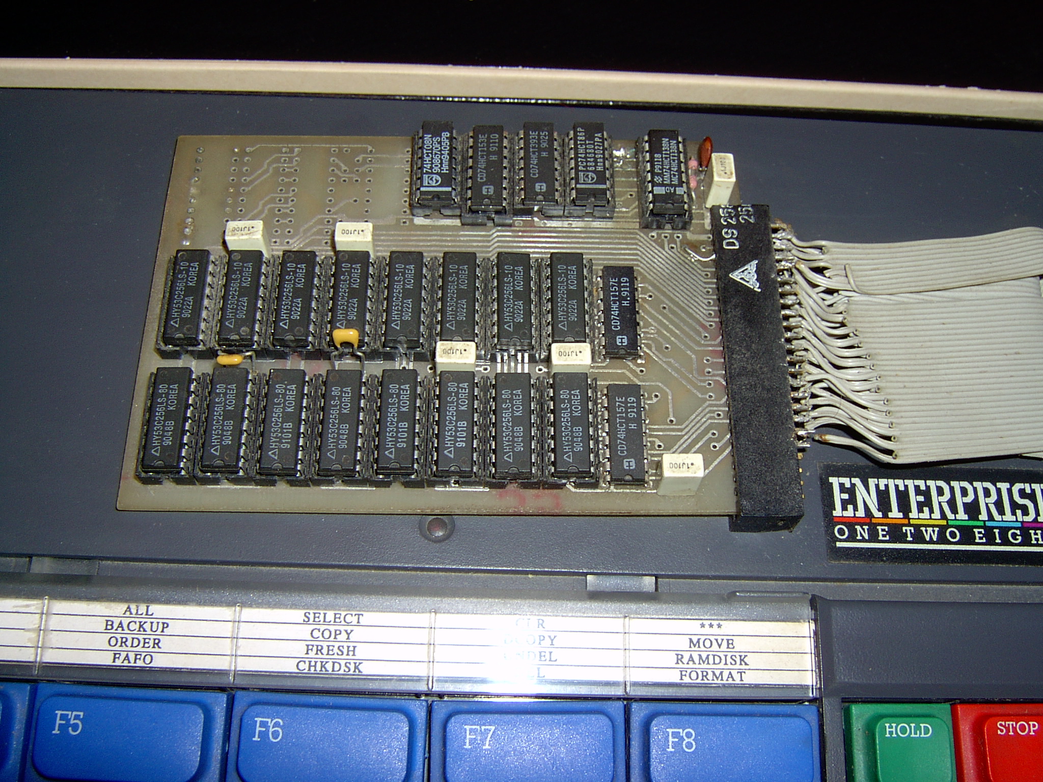 IM000714.JPG 1.11 MB Egy 320Kb-osra bõvített Turbó EP. (7.12Mhz) Látszik a kicserélt Z80, EXOS 2.3, a felsõ panelen kicserélt 64K 256K-ra, ahhoz tartoznak a pici barna panelen a kiegészítõ IC-k. Látszik még a Cartridge 128KB-osra bõvítéséhez szükséges plusz IC (Színes drótokon a levegõben.) :-) |